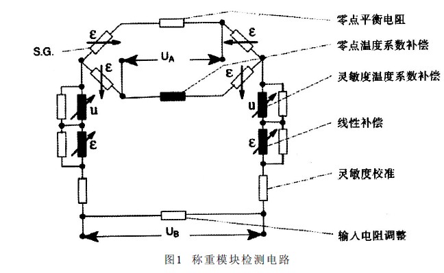 隨著技術(shù)的進(jìn)步, 由稱重模塊為核心的電子稱重系統(tǒng)已廣泛地應(yīng)用到各行各業(yè), 實(shí)現(xiàn)了對設(shè)備物料的快速、準(zhǔn)確的稱量, 特別是隨著微處理機(jī)的出現(xiàn), 工業(yè)生產(chǎn)過程自動(dòng)化程度化的不斷提高, 稱重系統(tǒng)已成為過程控制中的一種必需的裝置,從以前不能稱重的大型罐、料斗等重量計(jì)測到混合分配多種原料的配料系統(tǒng)、生產(chǎn)工藝中的自動(dòng)檢測和粉粒體進(jìn)料量控制等, 都應(yīng)用了稱重系統(tǒng), 目前, 稱重系統(tǒng)幾乎運(yùn)用到了所有的稱重領(lǐng)域。本文就常用的電阻應(yīng)變式稱重模塊構(gòu)成的稱重系統(tǒng)進(jìn)行探討。